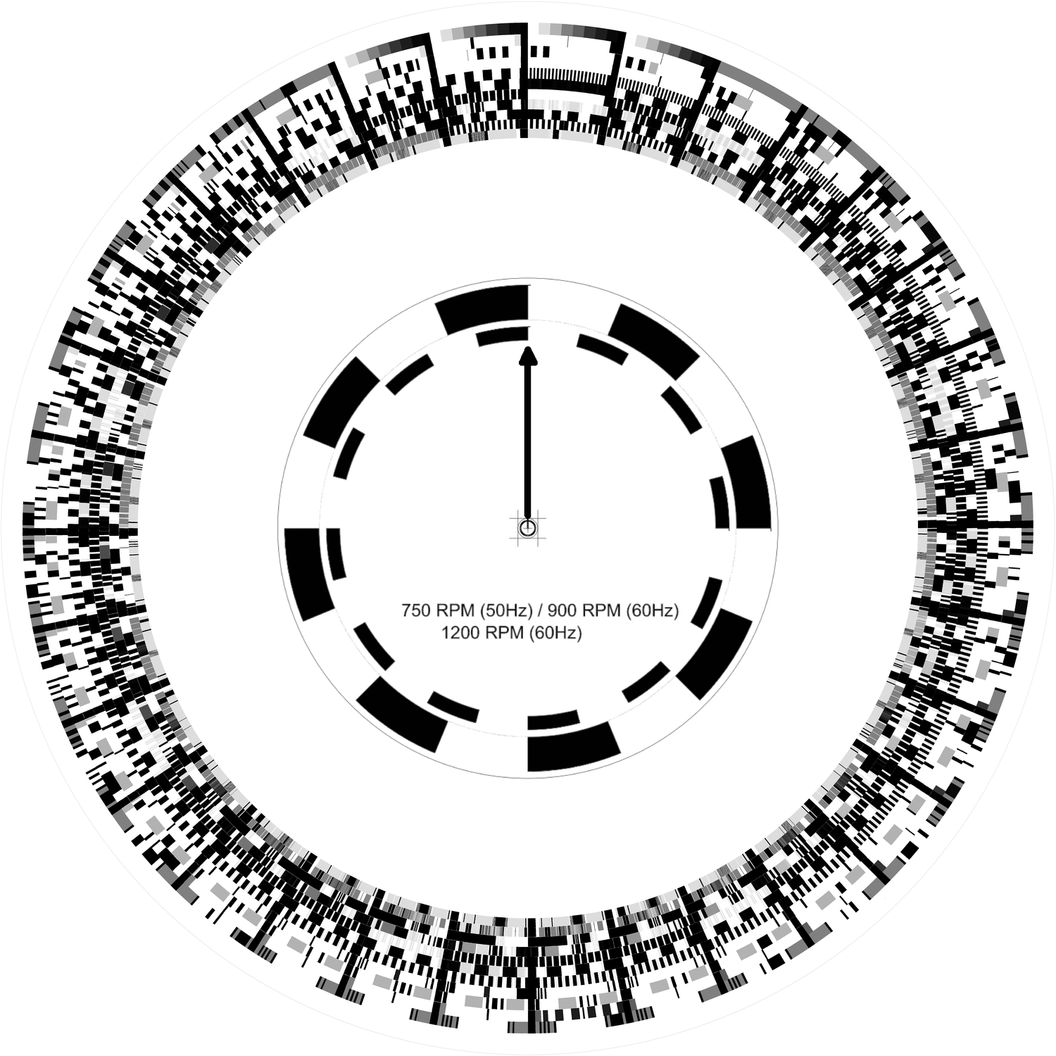 NBTV Forum user smeezekitty (author of FreeNBTV) kindly created some command line software for me that takes a picture, converts it to 32 lines, then forms it into a ring, creating one complete picture per ring. By stacking and resizing patterns in concentric circles using the image manipulation software GIMP, I had something that looks like a strobe disc for a turntable. An early proof of concept using this pattern, a blue laser and a photo panel from my NBTV Mixamp produced promising results.